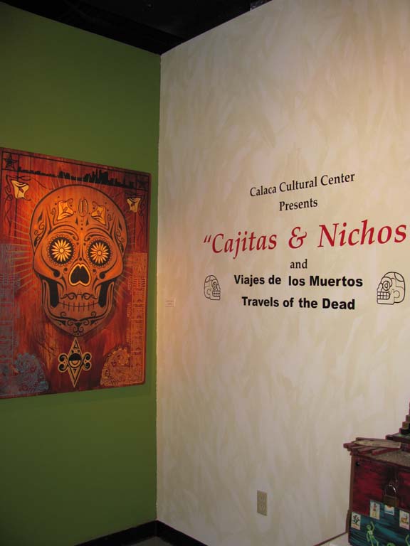 In 2004, The Calaca Cultural Center developed its own celebration of the Day of the Dead. Historical Overview of the Celebration: On of November 2 the Day of the Dead is celebrated. The modern view of death derives in part from Pre-Hispanic times. The Aztecs played a very important role in the development of this tradition. Through their history this festival emerged as one of complexity and varied interpretations. The Spanish Conquest of 1521 brought about the fusion of Catholic attitudes and indigenous beliefs. The Calaca Cultural Center has taken an opportunity to celebrate this day by bringing together artists, as well as community members to exhibit as part of the celebrations.